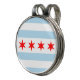 Golf Hat Clip and Ball Marker with flag of city of Chicago (largest city in Illinois), white and light blue striped flag with four red stars