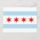 Postcard with flag of city of Chicago (largest city in Illinois), white and light blue striped flag with four red stars