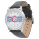 Watch with flag of city of Cincinnati, Ohio; white flag with three blue waves with red “C” in the center