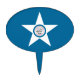 Cakepick with flag of Houston, Texas; blue flag with seal of Houston in a white star, with an illustration of a train