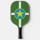 Pickleball paddle with flag of Jackson, Mississippi; green flag with yellow star in a blue circle