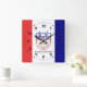 Clock with flag of city of Cleveland, Ohio; flag with three vertical bands of red, white and blue with seal of the city in the center