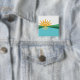 Button with a design with the flag of Coral Springs, Florida. A white, green, and blue flag with a yellow rising sun