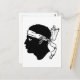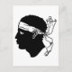 The flag of Corsica portrays a Moor's head in black wearing a white bandana above his eyes on a white background. The flag of Corsica is a symbol of freedom.