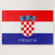 This puzzle features the flag of Croatia with the Croatian coat of arms and a customizable text "CROATIA" in white font on the blue stripe.