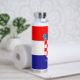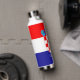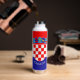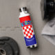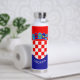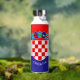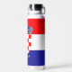 This water bottle features the flag of Croatia with the Croatian coat of arms and a customizable text "CROATIA" in white font on the blue stripe at the bottom.
