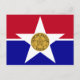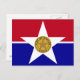 Postcard with flag of city of Dallas, Texas; flag with red and blue horizontal bands with seal of the city inside of a white star in the center