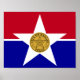 Poster with flag of city of Dallas, Texas; flag with red and blue horizontal bands with seal of the city inside of a white star in the center