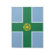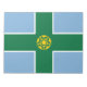 This design features the historic flag of the county of Derbyshire, which is located in the East Midlands of England. A large part of the Peak District National Park lies within the county of Derbyshire, and the Pennine range of hills which extends into the north of the county. Derbyshire borders West Yorkshire to the north; South Yorkshire to the north-east; Nottinghamshire to the east; Leicestershire to the south-east; Staffordshire to the west and south-west; Cheshire also to the west; and Greater Manchester to the north-west. Kinder Scout, at over 2,000 feet, is the highest point in the county. Major settlements in the traditional county of Derbyshire include Derby, Chesterfield, Long Eaton, Ilkeston, Swadlincote, Belper, Dronfield, Buxton, Ripley, Staveley, Glossop, Heanor, Bolsover and Eckington.