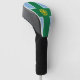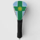 Golf Head Cover with design with a flag of historic county of Derbyshire, in England, Great Britain; blue flag with a green cross and a gold Tudor rose in the centre