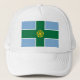 Hat with design with a flag of historic county of Derbyshire, in England, Great Britain; blue flag with a green cross and a gold Tudor rose in the centre