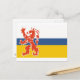 The flag of Limburg, a province in The Netherlands. The flag consists of three rows of colors. The colors are white, blue and yellow. In the flag there is a symbol of the red Limburgian lion with a double tail, facing the flagpole. The smaller blue middle row is symbolizing the Meuse River (Maas in Dutch)