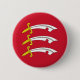 Round Button with design with a flag of historic county of Essex, in England, Great Britain; red flag with three white, gold hilted Saxon swords (Seaxes)