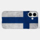 This phone case features a grungy version of the flag of the country of Finland! The Blue Cross Flag of Finland, also known as the Siniristilippu, features a blue Scandanavian Cross on a field of white. This version is a scratchy, grunge rendition of the flag, giving it a greyish, well-worn look.