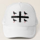 Hat with design with a flag of historic county of Flint, in Wales, Great Britain; white flag with a black engrailed fleury cross and four choughs