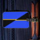 Luggage Tag with a design with the flag of Folsom, California. A blue, black, and yellow flag