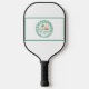Pickleball Paddle with a design with the flag of Pembroke Pines, Florida. A white flag with a green city seal in the center