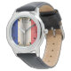 ... is a tricolor of three vertical bars of equal width in blue, white and red (from the mast).