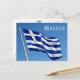 The national flag of Greece waving in the wind. The flag is popularly referred to as the "sky-blue-white" or the "blue-white" and is based on nine equal horizontal stripes of blue alternating with white. There is a blue canton in the upper hoist-side corner bearing a white cross. Photo by George Rex