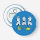 Button bottle opener with design with flag of Havana, capital city of Cuba, blue flag with three castles and golden key