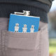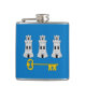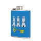Vinyl wrapped flask with design with flag of Havana, capital city of Cuba, blue flag with three castles and golden key