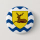 Round Button with design with a flag of historic county of Hertfordshire, in England, Great Britain; flag with an illustration of a stag in a yellow shield on white and blue wavy background