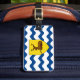 Luggage Tag with design with a flag of historic county of Hertfordshire, in England, Great Britain; flag with an illustration of a stag in a yellow shield on white and blue wavy background