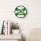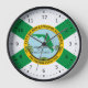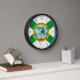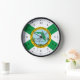 Clock with a design with the flag of Hollywood, Florida. A white flag with a green St. Andrew’s cross and a city seal in the center