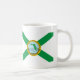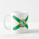 Mug with a design with the flag of Hollywood, Florida. A white flag with a green St. Andrew’s cross and a city seal in the center