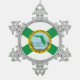 Snowflake Ornament with a design with the flag of Hollywood, Florida. A white flag with a green St. Andrew’s cross and a city seal in the center