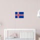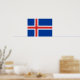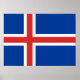 The flag of Iceland (Icelandic: íslenski fáninn) was officially described in Law No. 34, set out on 17 June 1944, the day Iceland became a republic. The law is entitled "The Law of the National Flag of Icelanders and the State Arms" and describes the Icelandic flag as follows: The civil national flag of Icelanders is blue as the sky with a snow-white cross, and a fiery-red cross inside the white cross. The arms of the cross extend to the edge of the flag, and their combined width is 2/9, but the red cross 1/9 of the combined width of the flag. The blue areas are right angled rectangles, the rectilinear surfaces are parallel and the outer rectilinear surfaces as wide as them, but twice the length. The dimensions between the width and length are 18:25. Iceland's first national flag was a white cross on a deep blue background. It was first shown in parade in 1897. The modern flag dates from 1915, when a red cross was inserted into the white cross of the original flag. This cross represents Christianity. It was adopted and became the national flag when Iceland gained independence from Denmark in 1918. For the Icelandic people the flag's colouring represents a vision of their country's landscape. The colours stand for 3 of the elements that make up the island. Red is the fire produced by the island's volcanoes, white recalls the ice and snow that covers Iceland, and blue for the Atlantic Ocean. The state flag (Tjúgufáni) differs from the civil one, that the outer rectangles are three times longer than the hoist side rectangles and split at the end, cut directly from the outer corners to its centre line. Cutting the inner edges of the outer rectangles at 4/7 of outer length and 3/7 of inner length of the outer rectangles. When this cut encounters the edge of the red cross it is cut vertically.