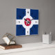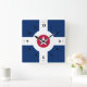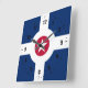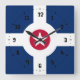 Clock with flag of city of Indianapolis, Indiana; blue flag with white cross and red circle with white star in the center