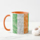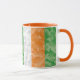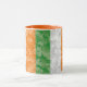 The Irish flag has three stripes in green, white, and orange colors. This product associates the colors of the national flag and shamrocks. Shamrock comes from the Gaelic word seamrog, which means "little clover." St. Patrick allegedly used the three-leaf clover to teach people about Christianity as he traveled around Ireland. The leaves illustrated the Father, Son, and the Holy Spirit of the Holy Trinity. Shamrocks are an Irish symbol.