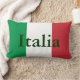 13” x 21” lumbar throw pillow with an image of the colors of the flag of Italy and “Italia” printed across it in dark green. Green back.