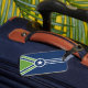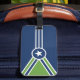 Luggage Tag with a design with the flag of Jackson, Tennessee. A blue, green, and white flag