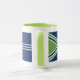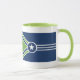 Mug with a design with the flag of Jackson, Tennessee. A blue, green, and white flag