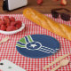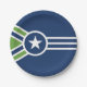 Paper Plate with a design with the flag of Jackson, Tennessee. A blue, green, and white flag