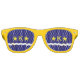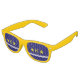 Party Shades Sunglasses with design with flag of Kinshasa, capital city of Democratic Republic of Congo, blue flag with white wave, two golden stars and letter ‘K’ in the center