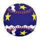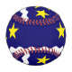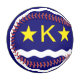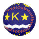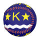 Baseball with design with flag of Kinshasa, capital city of Democratic Republic of Congo, blue flag with white wave, two golden stars and letter ‘K’ in the center
