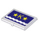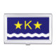 Card Holder with design with flag of Kinshasa, capital city of Democratic Republic of Congo, blue flag with white wave, two golden stars and letter ‘K’ in the center