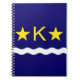 Notebook with design with flag of Kinshasa, capital city of Democratic Republic of Congo, blue flag with white wave, two golden stars and letter ‘K’ in the center