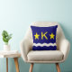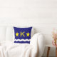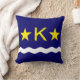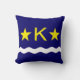 Throw pillow with design with flag of Kinshasa, capital city of Democratic Republic of Congo, blue flag with white wave, two golden stars and letter ‘K’ in the center