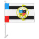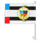A car flag with a design with the flag of Knoxville, Tennessee. A black, white, blue, and red flag