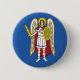 Round button with the flag of city of Kyiv (Kiev), the capital of Ukraine, a blue flag with the image of archangel Michael in the center
