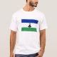The current national flag of Lesotho, adopted on October 4, 2006, features a horizontal blue, white, and green tricolour with a black mokorotlo (a Basotho hat) in the center. The design, introduced to honour the 40th anniversary of independence, is reportedly intended to reflect a peaceful orientation for the country The first flag of Lesotho was introduced on October 4, 1966, the day of Lesotho's full independence from the United Kingdom. It featured a prominent white mokorotlo. The blue stood for sky and rain, the white for peace, the green for land, and the red for faith. A new flag, designed by Sergeant Retšelisitsoe Matete,[3] was adopted on January 20, 1987, following a military coup which ousted the Basotho National Party after 20 years in power. A light brown traditional Basotho shield along with an assegai (lance) and knobkierie (club) replaced the Basotho hat as the primary emblem. The colour scheme and pattern changed as well, with a triangular white field standing for peace. The bottom diagonal contained a blue strip for rain and a green triangle for prosperity.