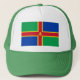 Hat with design with a flag of historic county of Lincolnshire, in England, Great Britain; green and blue flag with red and yellow cross and a Fleur-de-Lis in the centre