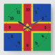 Wall Clock with design with a flag of historic county of Lincolnshire, in England, Great Britain; green and blue flag with red and yellow cross and a Fleur-de-Lis in the centre