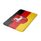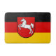 Bath mat flag of Lower Saxony; design with horizontal tricolor of black, red and yellow (golden), with state’s emblem with an illustration of a white horse in the center