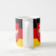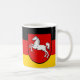 Mug flag of Lower Saxony; design with horizontal tricolor of black, red and yellow (golden), with state’s emblem with an illustration of a white horse in the center