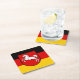 Paper coaster with flag of Lower Saxony; design with horizontal tricolor of black, red and yellow (golden), with state’s emblem with an illustration of a white horse in the center